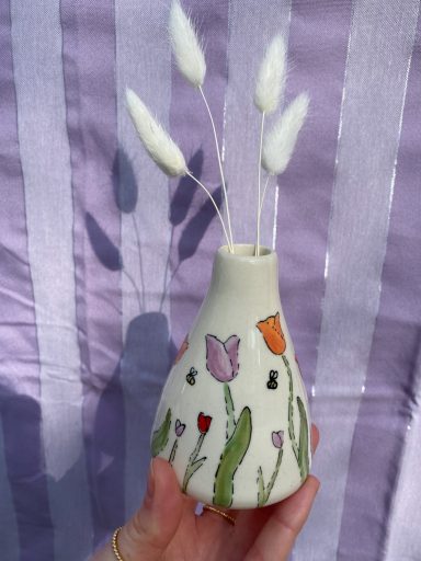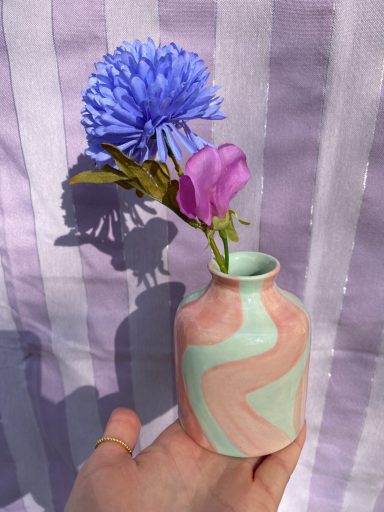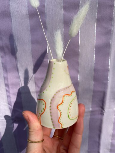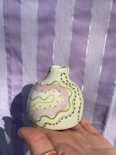 Recent work from Becca includes her Tiny Vase collection, cups, and ring holders.